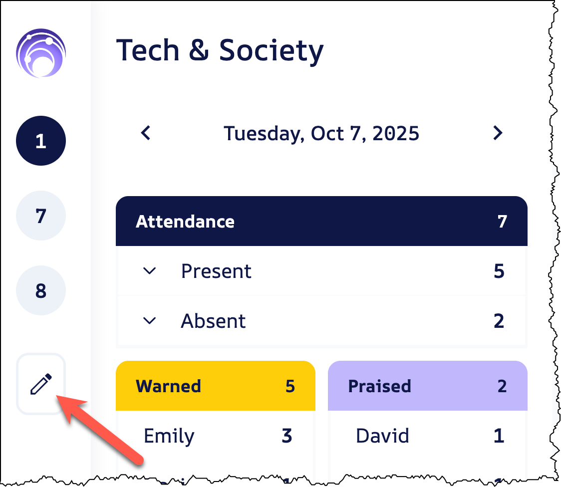 Click on the pencil icon on the left side of the screen to add classes or edit classes.
