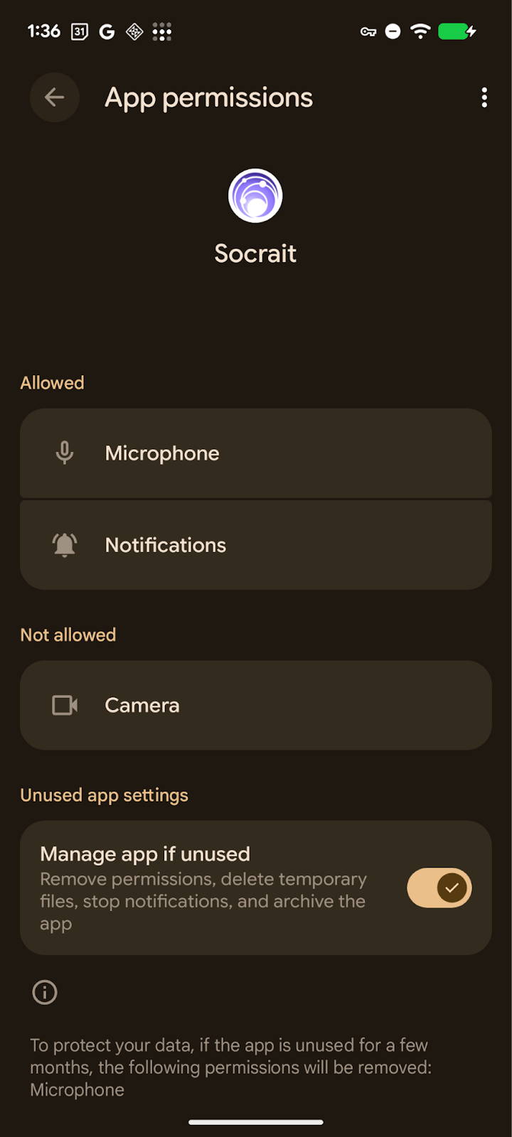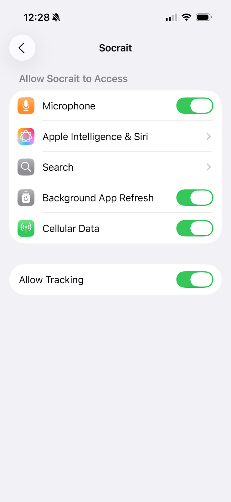 Open the Android or iOS settings app and search for "Socrait." In the permissions settings, verify that the microphone permission is turned on.